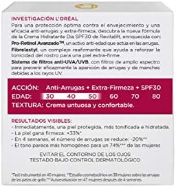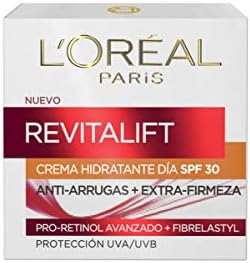 L’Oreal Paris Revitalift es una crema hidratante anti-edad con protección contra los rayos UVA/UVB para prevenir manchas en la piel. Su fórmula incluye ingredientes activos, como Pro-Retinol Nuevo y Fibrelastyl, que ayudan a alisar y reafirmar la piel. Aplicando cada mañana en la cara y cuello limpios, proporciona una piel más tonificada, hidratada y firme, con menos arrugas y un aspecto más uniforme en 4 semanas. Contiene 50 ml y cuenta con Protección Solar SPF 30.