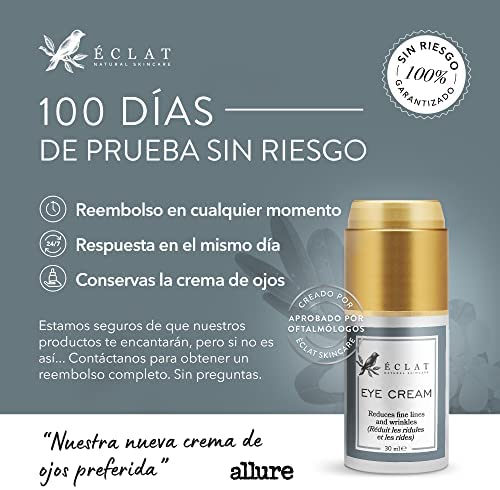 La crema para ojos de Eclat Skincare está patentada con FrostProtect, que preserva la potencia de la crema hasta un 65.3% más que otras cremas. La fórmula está diseñada para reducir las arrugas, hidratar profundamente, luchar contra los radicales libres y ser suave con piel delicada. Contiene extractos orgánicos y ofrece una tecnología de entrega encapsulada para resultados óptimos. Además, es libre de crueldad, parabenos y sulfatos.