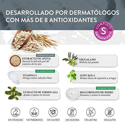 La crema es rica en ingredientes como el ácido hialurónico, el escualeno y los ácidos grasos hidratantes que humectan de manera profunda la piel alrededor de los ojos. También cuenta con ingredientes antioxidantes que combaten los radicales libres, evitando así la aparición de signos de envejecimiento en la piel.