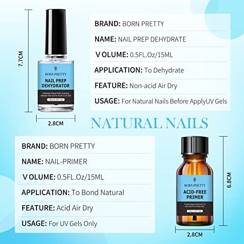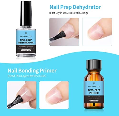Born Pretty ofrece un juego de imprimación y deshidratador para preparación de uñas que puede reducir el aceite de uñas y crear una base fuerte para aplicar gel. El producto es menos corrosivo y ayuda a evitar el levantamiento de las uñas. Compatible con todas las marcas de cuidado de uñas líderes en el mercado. Born Pretty se esfuerza por brindar productos y servicios perfectos.