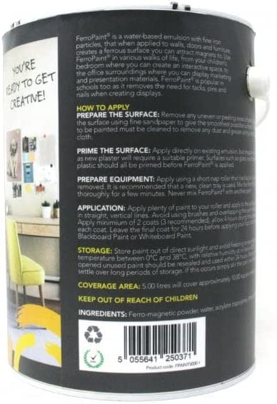 ¿Estás buscando una forma innovadora de dar vida a tus paredes, puertas y muebles? FerroPaint es la respuesta perfecta para ti. Es una emulsión a base de agua con partículas finas de hierro que crea una superficie ferrosa a la que puedes atraer imanes. ¡Elimina la necesidad de tachuelas, alfileres y uñas y convierte tus espacios en áreas interactivas!.