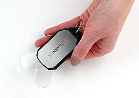 ThinOPTICS son las gafas de lectura más delgadas, ligeras y resistentes del mundo. Su bolsa de transporte se puede colgar del llavero para tenerlas siempre a mano. Incluyen cristales de policarbonato de calidad óptica y una funda-llavero para evitar perderlas.