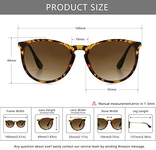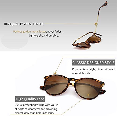 Sungait ofrece gafas de sol polarizadas y no polarizadas para mujeres con múltiples colores. Sus gafas de sol Retro son cómodas, livianas y agregan un toque lindo y clásico. El cuadro TR90 durable es flexible y resistente. También ofrecen una garantía de rotura de por vida y de devolución de dinero.
