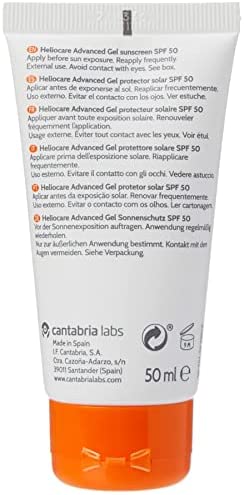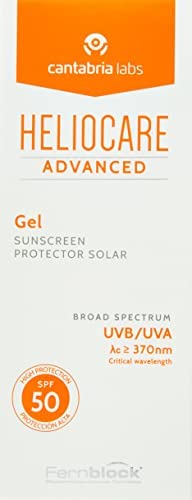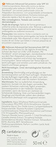 Gel solar facial Heliocare Advanced SPF 50, ligero, de rápida absorción, antioxidante, ideal para pieles mixtas/grasas, no comedogénico, 50 ml.