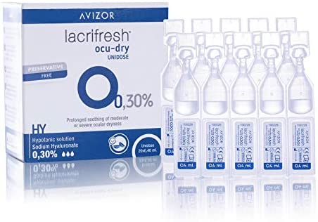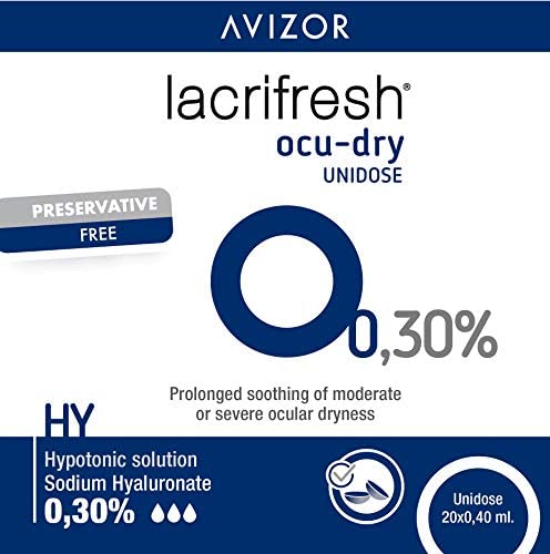 Avizor lacrifresh ocu-dry 0.30% es un producto diseñado para aliviar los síntomas del ojo seco moderado a severo. Con una solución acuosa hipotónica con hialuronato de sodio al 0, 30% y electrolitos esenciales, es apto para su uso con o sin lentes de contacto y ofrece una mayor comodidad durante su uso. Viene en formato de monodosis, evitando la contaminación y sin conservantes.