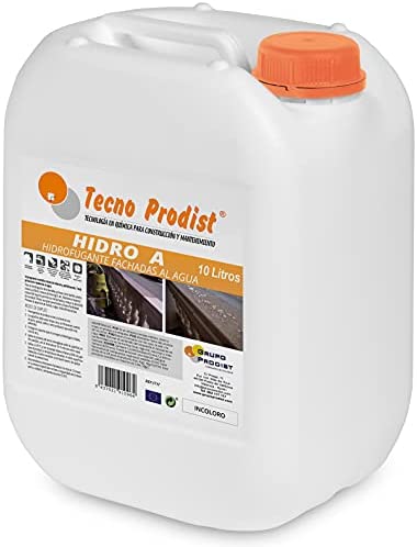 Impermeabilizante transparente al agua y Hidrofugante incoloro para fachada, tejado, pared, muro, teja, ladrillo y piedra. Aplicable con rodillo, brocha o pulverizador. Tecno Prodist HIDRO – A (10 Litros).