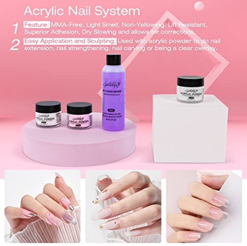 Asimismo, el kit también incluye polvo acrílico profesional, elaborado con una fórmula especial y capacidades de fabricación avanzadas que proporcionan una consistencia impecable, una adhesión superior, una autonivelación suave y una aplicación sin burbujas. Este polvo acrílico ofrece una resistencia y durabilidad excepcionales, con una duración aproximada de 3 semanas sin curar.