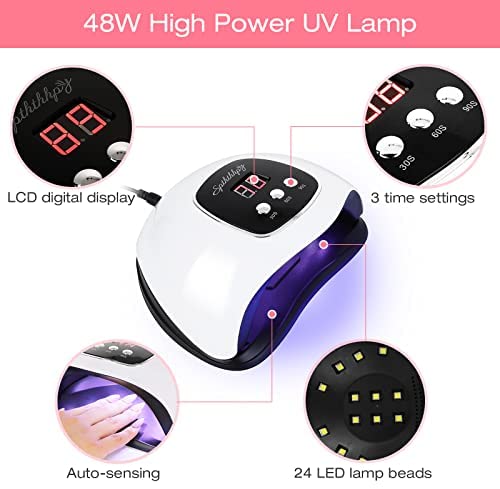 El kit de inicio de manicura y pedicura de SPTHTHHPY incluye una lámpara de uñas LED de 48W con 3 modos de temporización y sensor de movimiento, polvo acrílico profesional y líquido monómero no amarillo. Ideal para uso en casa con utensilios para arte de uñas incluidos.