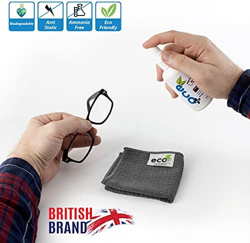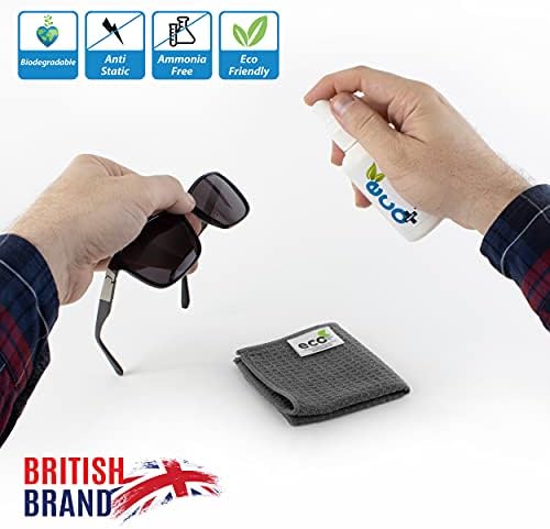 Kit de limpieza óptica natural Ecomoist 100ml + gamuza microfibra para gafas de lectura y sol, limpieza segura y rápida de lentes.
