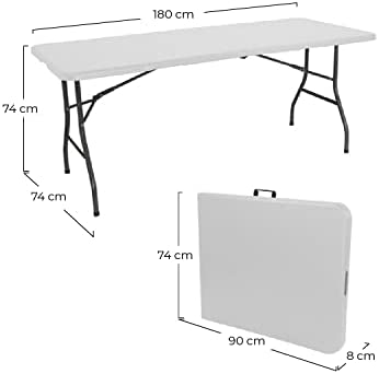 La Mesa Catering Plegable Portátil Rectangular | GH91 está disponible en tres medidas diferentes: 150 cm (disponible en color blanco), 180 cm (disponible en color blanco y negro) y 240 cm (disponible en color blanco). Cada una de ellas tiene una capacidad diferente, por lo que se pueden adaptar a cualquier necesidad.