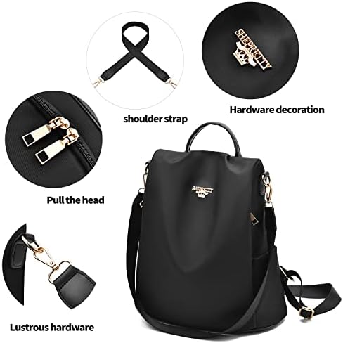 La mochila ShePretty tiene una bandolera desmontable y un diseño antirrobo con cremallera trasera. Hecha de tela Oxford de alta calidad, es adecuada para todas las edades y ocasiones. Con capacidad para libros, ropa y otros artículos, es práctica y elegante. No es apropiada para laptops.