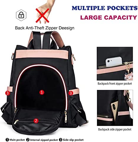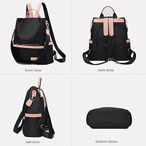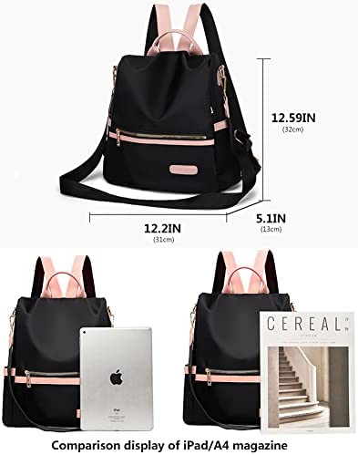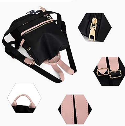 Una mochila femenina de tela Oxford y fibra de poliéster, resistente al agua y adecuada para adolescentes, mujeres y estudiantes. Con bolsillos frontales y laterales, puede acomodar computadoras portátiles y revistas A4. Ideal para uso diario, viajes, escuela o trabajo. Disponible en rosa y negro.
