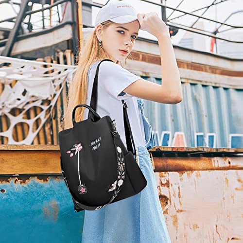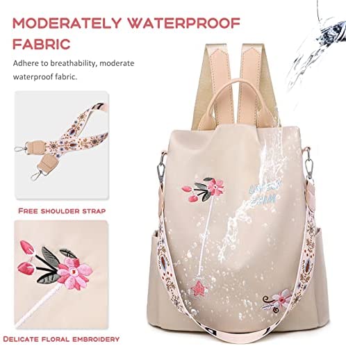 Mochila impermeable elegante para mujer con diseño floral, ideal para viaje y portátil.