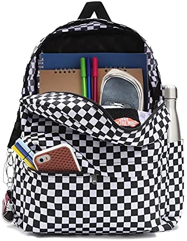 La mochila [título original] de la marca Vans tiene una capacidad de 22 litros y un tamaño de 42 x 32 x 12 cm. Cuenta con un bolsillo lateral para botella de agua y un bolsillo frontal con organizador. Disponible en Amazon.es desde mayo de 2021.