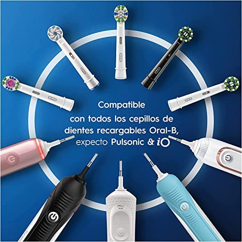 El cepillo Oral-B CrossAction es compatible con todos los mangos de la marca, a excepción de Pulsonic e iO, y está diseñado para garantizar un ajuste total y una eficacia de limpieza durante más de 160 cepillados.