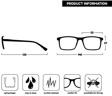 En resumen, estas gafas de lectura son una excelente opción para personas que necesitan una mayor potencia óptica y quieren lucir elegantes y modernos. Con dimensiones de 14 x 14 x 4.2 cm y un peso de 78 gramos, estas gafas se ajustarán cómodamente en la cara sin molestar. Si eres una mujer emprendedora que desea complementar su look con un par de gafas de lectura sofisticadas y cómodas, esta es una opción que valdrá la pena considerar.
