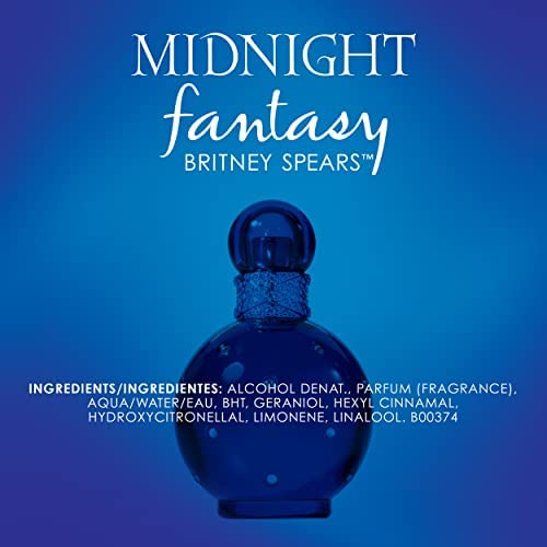 Midnight Fantasy es el nuevo perfume frutal-floral lanzado por Britney Spears, con un olor innovador y dulce que recuerda a las gominolas. Su frasco, de color azul/fucsia con cristales Swarovski, contiene notas de frambuesa, cereza negra, ciruela, orquídea negra, fresia, lirio, ámbar, almizcle y vainilla.