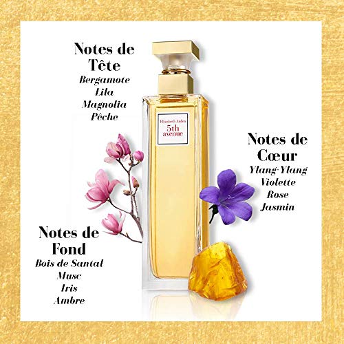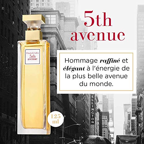 5th Avenue de Elizabeth Arden es una fragancia Floral Oriental que captura la sofisticación de la famosa avenida neoyorquina. Contiene magnolia, bergamota, rosa de Bulgaria, vainilla, ámbar y sándalo. Descontinuada por el fabricante, mide 5 x 6 x 20 cm y pesa 125 gramos. Disponible desde noviembre de 2013 y fabricada por Elizabeth Arden. Departamento de Mujer.