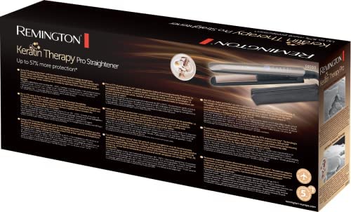 Otras funciones de la Remington Keratin Therapy Pro S8593 incluyen una función de bloqueo de temperatura, función turbo y dispositivo de cierre para guardar. También incluye un neceser negro para guardar resistente al calor.