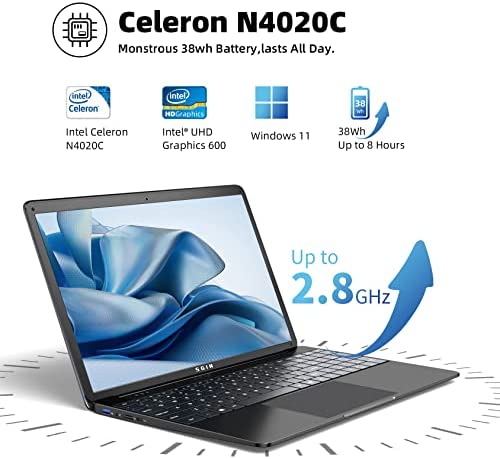 La computadora portátil SGIN tiene un procesador Intel Celeron N4020C y el sistema operativo Windows 11. Además, tiene 8GB de memoria DDR4, almacenamiento SSD de 256GB y una pantalla de 15,6 pulgadas con buena calidad visual. Tiene una variedad de puertos y viene con una película de teclado personalizada en varios idiomas. También ofrece un servicio de garantía de un año y soporte al cliente en español.
