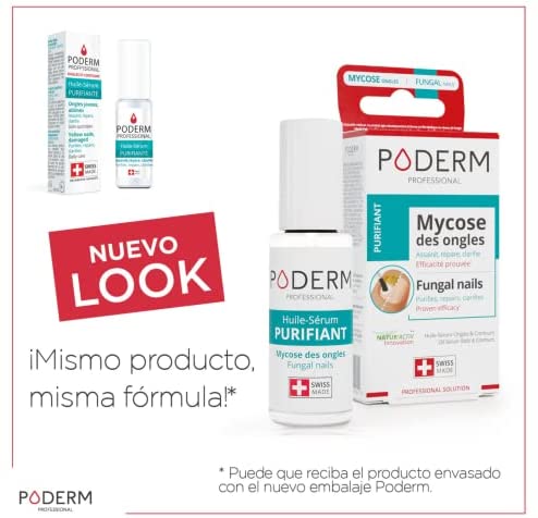 El aceite-sérum purificante Poderm Professional es la solución natural para combatir las micosis en las uñas de pies y manos. Este producto antifúngico contiene una selección de 12 aceites y aceites esenciales obtenidos de agricultura biológica que tienen propiedades purificantes, nutrientes y reparadoras.