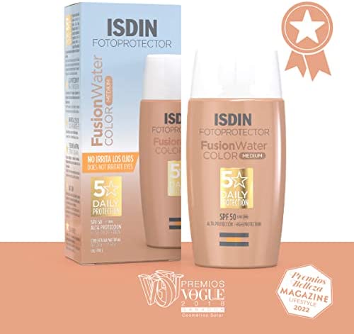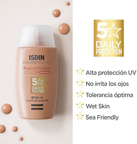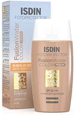 Protector solar facial diario con SPF 50, Textura Ultraligera de 50ml: Fotoprotector ISDIN Fusion Water Color.