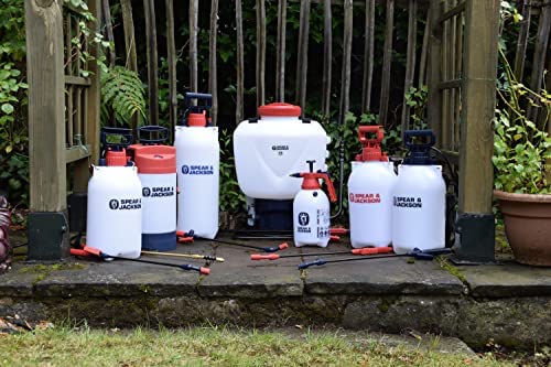 Este producto de Spear & Jackson es un aspersor de presión para jardinería, que incluye una botella graduada translúcida de 5 litros, pulverizador a presión, válvula de liberación de presión y correa para el hombro, varilla/lanza de riego de 560 mm y manguera de 1,3 m. Es ideal para uso con agua y productos no viscosos a base de agua o solubles, incluyendo pesticidas, herbicidas, insecticidas, fungicidas y fertilizantes.