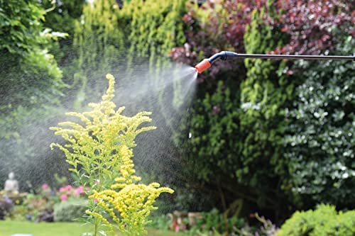 En cuanto al pulverizador a presión, podemos destacar su botella graduada translúcida en litros y onzas líquidas para una mayor precisión al llenar o mezclar dentro de la botella. Además, cuenta con una varilla/lanza de riego de 560 mm y una manguera de 1,3 m para su uso en lugares incómodos o inaccesibles. Este pulverizador es compatible con agua y productos no viscosos a base de agua o solubles, incluyendo pesticidas, herbicidas, insecticidas, fungicidas y fertilizantes.