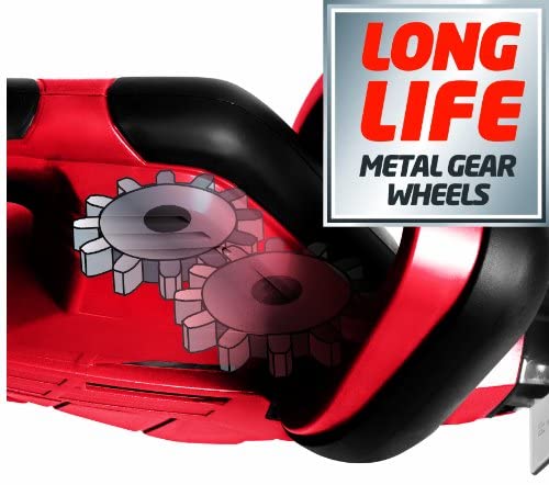 Otro punto a favor es la resistente transmisión metálica que permite un funcionamiento silencioso del motor y una mayor vida útil del funcionamiento prolongado. Además, la protección especial antigolpes ubicada en la parte delantera del sable y la protección de las cuchillas en aluminio de alta calidad, las cuchillas están protegidas en todo momento contra el desgaste prematuro.