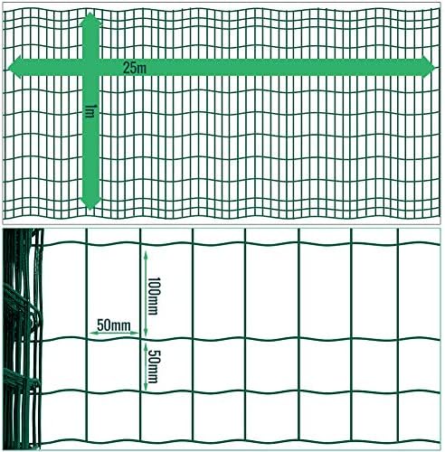Rollo de malla metálica de 100cm x 25m con revestimiento plástico verde cuadrado de 50 x 100mm para vallas de jardín DA001.
