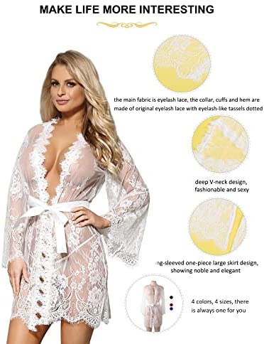 La bata atractiva de Comeondear es un ejemplo de su gran calidad. Esta prenda utiliza borlas de encaje con bordes suaves y diseño de encaje de pestañas para añadir un toque de lujo. El bordado de patrón de encaje transparente y la tela de malla pueden mostrar completamente tus curvas y añadir al instante vitalidad a la noche. El material utilizado es 95% poliéster y 5% spandex, lo que garantiza comodidad y durabilidad.