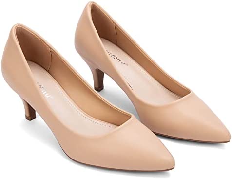 El producto son zapatos de mujer con un tacón de gatito de 5.5 cm. Están hechos de un revestimiento sintético y una suela de caucho. El cierre es de ponerse y están disponibles en Amazon desde el 18 de octubre de 2022.