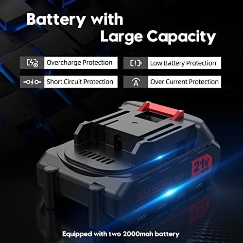 Esta mini motosierra portátil cuenta con una batería de litio de 2000 mAh extraíble y recargable. Puedes usar la motosierra durante unos 40–50 minutos y el tiempo de carga solo dura 1.5–2 horas. Además, las baterías cuentan con protección contra sobrecarga y temperatura, lo que aumenta la duración de la batería.