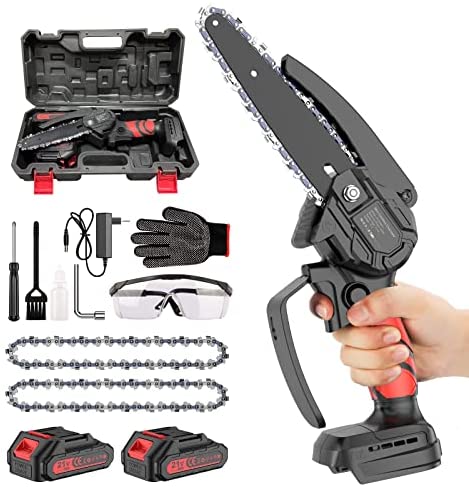 La Mini Motosierra Portátil de 6 Pulgadas es una herramienta ligera y ergonómica perfecta para granjas, jardines y uso doméstico. Viene con dos baterías recargables, accesorios y medidas de seguridad para evitar accidentes.