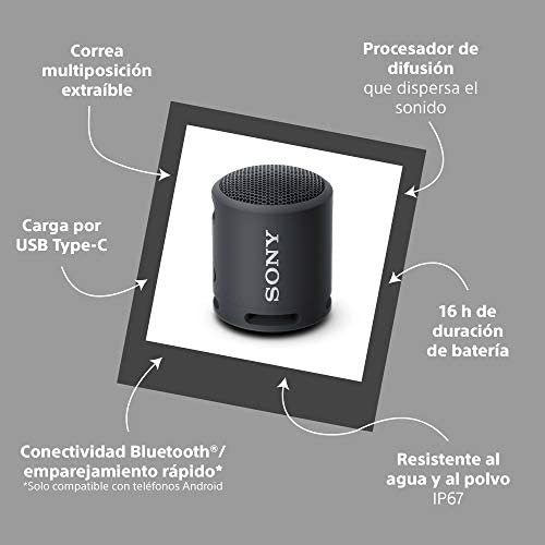 Otras características que destacan del SRS-XB13 incluyen la posibilidad de realizar llamadas con manos libres gracias al micrófono incorporado, la conectividad Bluetooth o el emparejamiento rápido con dispositivos Android. Además, puedes cargar tu altavoz con el puerto USB Type-C.
