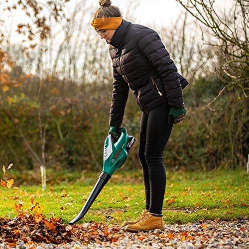 Soplador a batería Bosch 06008A0501 ALB 18 LI con 2,5 Ah y 18 V en negro/verde.