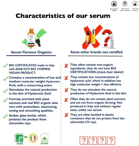 Florence es una marca que se preocupa por la calidad y la eficacia de sus productos, y es por eso que todos sus productos están certificados como orgánicos y veganos. Si no está satisfecho con el sérum Florence, la marca ofrece una garantía de reembolso completo sin complicaciones en un plazo de 30 días después de la compra.
