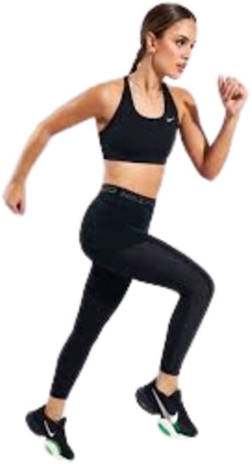El sujetador deportivo Nike sin acolchado y con logo de swoosh, está diseñado con tecnología que absorbe el sudor para mantener seco y cómodo durante actividades de impacto medio. Su diseño de espalda racerback permite moverse naturalmente, mientras que la compresión ofrece un mayor soporte. Disponible en Amazon.es.