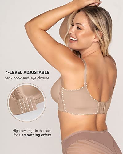 Otra de las ventajas de este sujetador es que es ideal para el uso diario. Sus suaves varillas en los laterales te dan mejor ajuste y evitan que el sujetador se enrolle, y las cargaderas graduables con broches delanteros te permiten usarlo cruzado si así lo deseas. Además, su abrochadura de tres gachos y cuatro niveles de ajuste te aseguran una sujeción perfecta.
