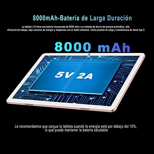 La batería de larga duración de 8000 mAh de la Tablet J10 permite trabajar, estudiar y jugar durante horas sin necesidad de carga. También, este dispositivo viene con una serie de accesorios, como mouse, teclado Bluetooth y lápiz táctil, que permite usar la Tablet J10 como una computadora portátil pequeña.