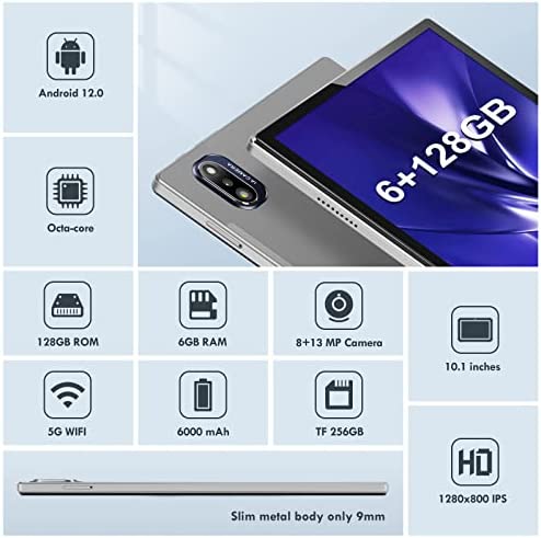 La tableta BRILLAR T16 cuenta con una versión completa de Android 12, potente procesador de 8 núcleos a 2.0GHz, 6GB de RAM, 128GB de ROM (con capacidad para expandirse hasta 1TB), cámara frontal de 8MP y trasera de 13MP, batería de 6000mAh y pantalla táctil de 10.1 pulgadas. Compatible con WiFi 5G y con una carcasa metálica, incluye también un estuche y otros accesorios en su paquete. No admite tarjeta SIM.