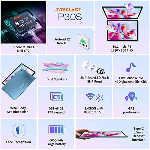 Tablet TECLAST P30S de 10.1 pulgadas con Android 12, 2.0GHz, 4GB de RAM+64GB de ROM y más.