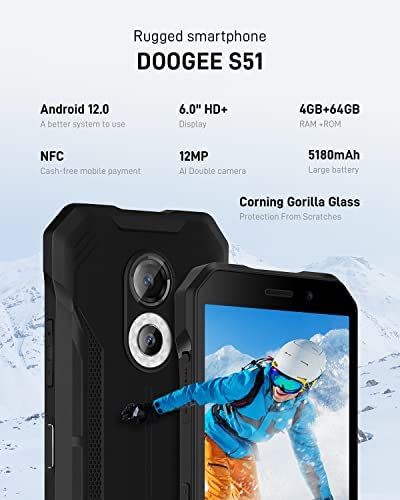 El Doogee S51 es un móvil resistente e irrompible que cuenta con certificaciones IP68, IP69K y MIL-STD-810H. Tiene una pantalla HD de 6″, cámara doble AI de 12MP y frontal de 8MP, una batería de 5180mAh, 4GB de RAM y 64GB de almacenamiento. También cuenta con NFC y Google Pay, y es compatible con banda de frecuencia 4G dual SIM. Es resistente al polvo, agua y golpes. Viene con una garantía de 2 años.