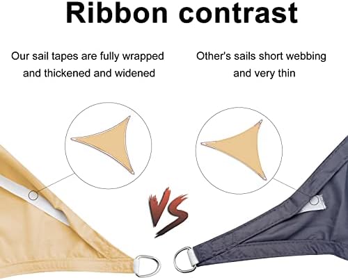 Los toldos vela de Sunny Guard están fabricados con tejido de protección solar de alta calidad y una costura resistente. Además, vienen equipados con un duradero anillo en D de acero inoxidable y una cuerda en cada esquina, lo que hace que sean fáciles de instalar en cualquier área exterior.