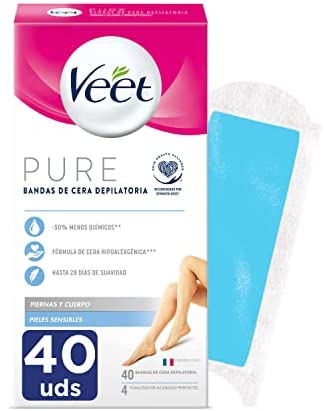Las Bandas de Cera Fría Depilatoria Pure son ideales para depilación de cuerpo y piernas en pieles sensibles. Dermatológicamente recomendadas por Skin Health Alliance, están formuladas para minimizar el riesgo de reacciones alérgicas, eliminando el vello desde la raíz y dejando la piel suave hasta 28 días. Incluyen 40 bandas y 4 toallitas de acabado perfecto.