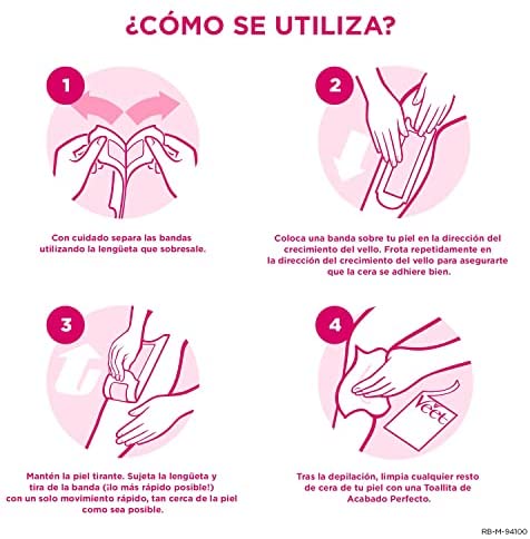 Además, estas bandas minimizan el número de ingredientes requeridos, lo que reduce el riesgo de reacciones alérgicas. La cera elimina el vello desde la raíz, dejando la piel suave hasta por 28 días, en comparación con las bandas Veet Easy-Gel.