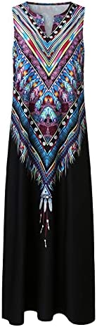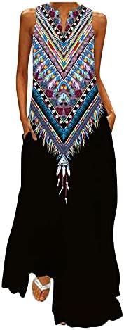 VEMOW Vestido Largo de Verano sin Mangas para Mujer con Cuello en V y Bolsillos Vintage Talla Grande.
