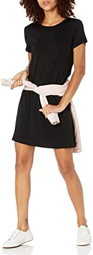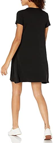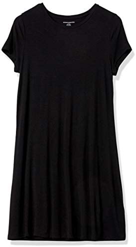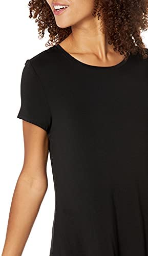 Este vestido de manga corta holgado de Amazon Essentials es versátil y cómodo con un cuello redondo y caída femenina. Está disponible en varias tallas y colores y es lavable a máquina.