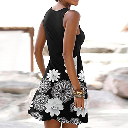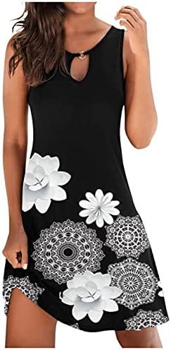 Vestido camisola de mujer sin mangas con estampado floral vintage, elegante y casual, en rebajas para vacaciones.