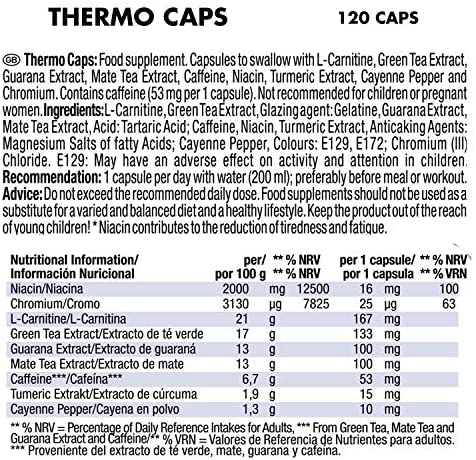THERMO CAPS es uno de los suplementos más eficaces para quemar grasas y mejorar el rendimiento durante el entrenamiento. Este producto ha sido diseñado con una combinación única de ingredientes que ayuda a optimizar los resultados al mismo tiempo que se reduce la grasa corporal.
